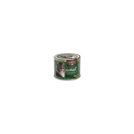 Carne, corazón, hígado y molleja de pavo (40%); caldo de carne de pavo y trucha (28,8%), trucha (26%); arándanos (4%); minerales (0,5%), cáscaras de huevo, desecadas (0,5%); aceite de salmón (0,1%); menta gatuna, deshidratada (0,1%)
