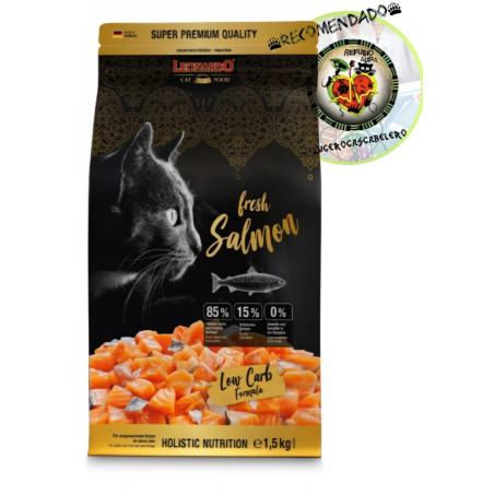 salmón fresco (43%); carne de ave fresca (42%); harina de guisantes, zooplancton marino (krill, 1,7 %); huevo secado; harina de pescado, secado, hidrolizado; hígado de pájaro hidrolizado; chía; salvo cerveza secada (0,4 %), algarroba, orujo de manzana, zanahorias, chirivías, remolacha, puerro, algas (0,18%); fosfato dicálcico; cloruro de potasio; bayas, arándanos (0,07 %), hierbas (ortiga, raíz de genciana, centaura, manzanilla, hinojo, alcaravea, muérdago, alquila, zarza); extracto de aceituna